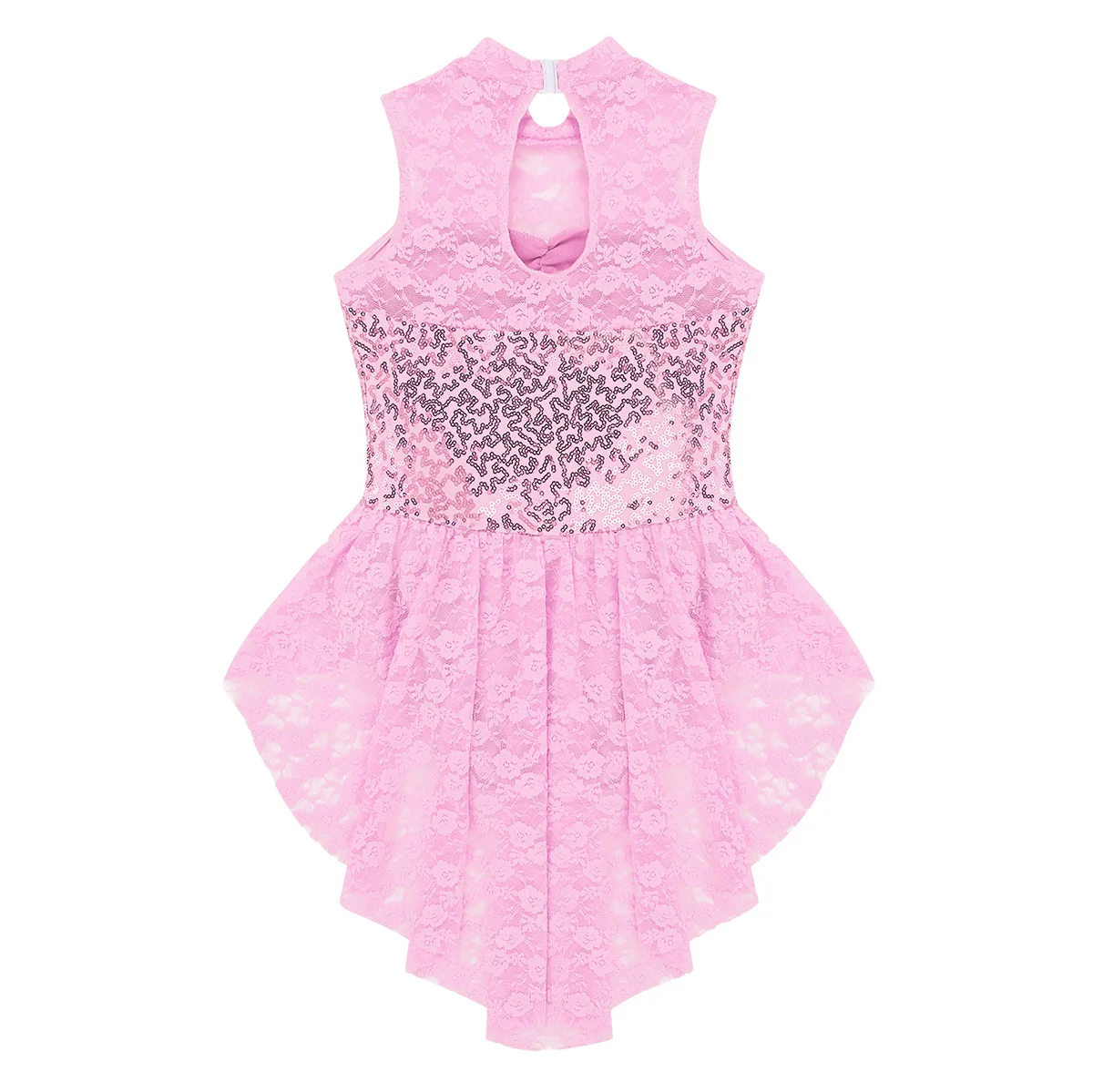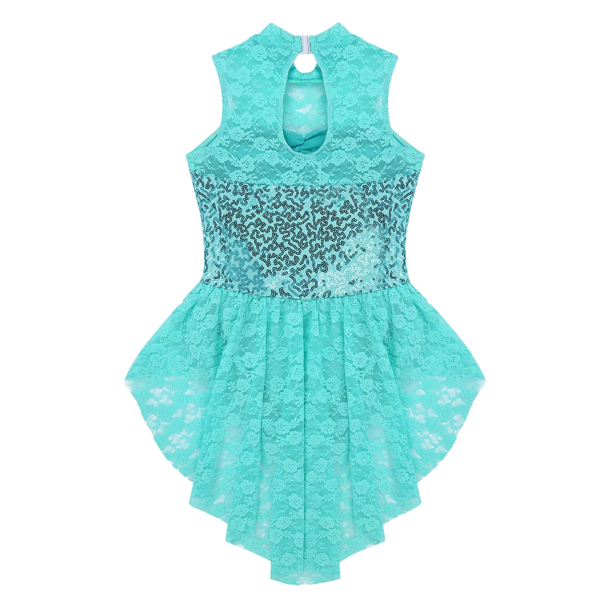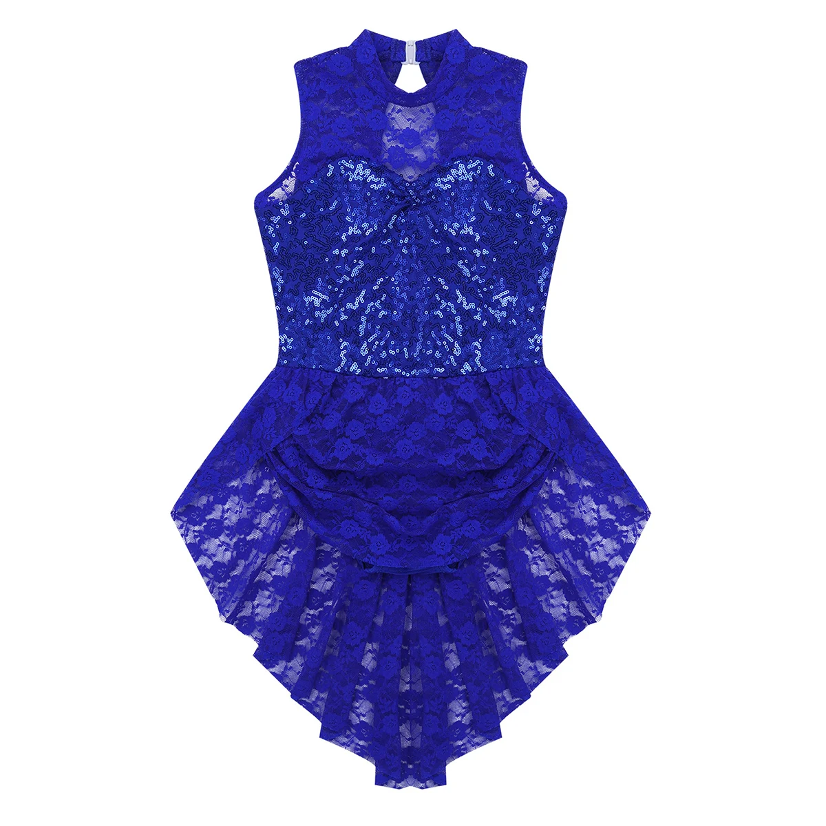Вырез на спине. 1 многослойная драпированная кружевная юбка с высокой талией, прилегающая к талии. Красивая Одежда для танцев для вашей девочки.
