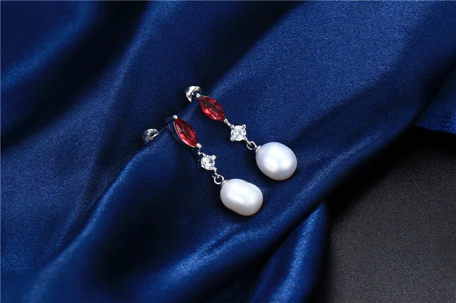 Красный создания свисающие серьги с рубином, 925 стерлингового серебра Серьги для женщин 100% натуральный жемчуг серьги, модное ювелирное изделие, 2019 Новый