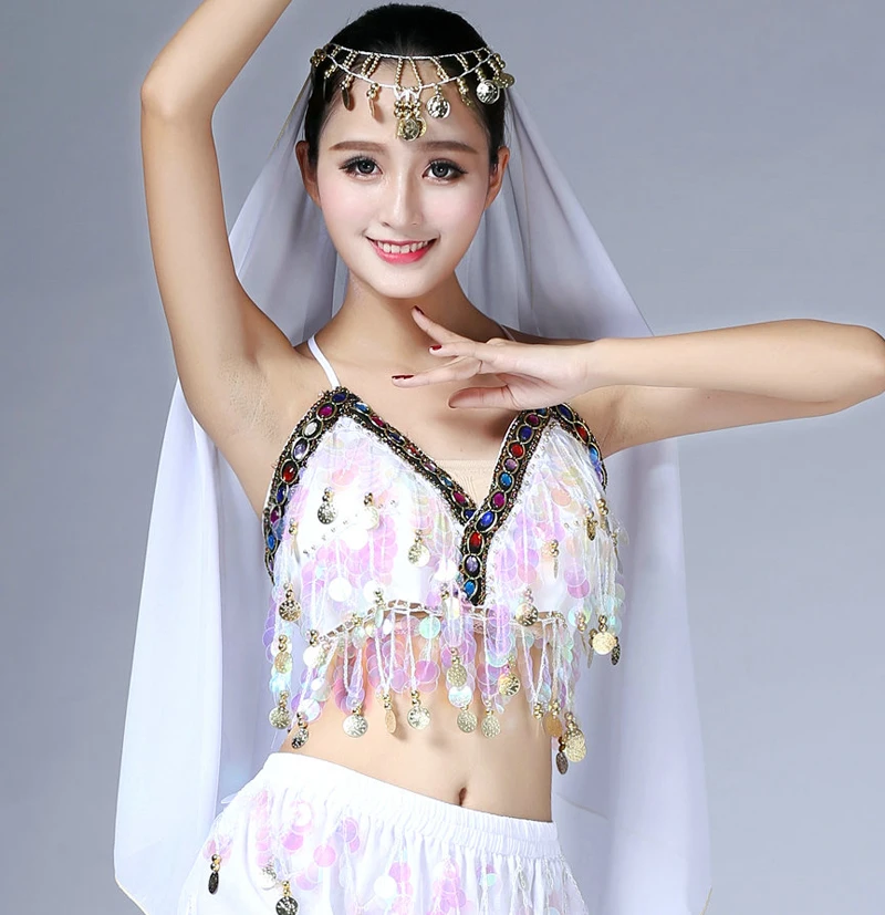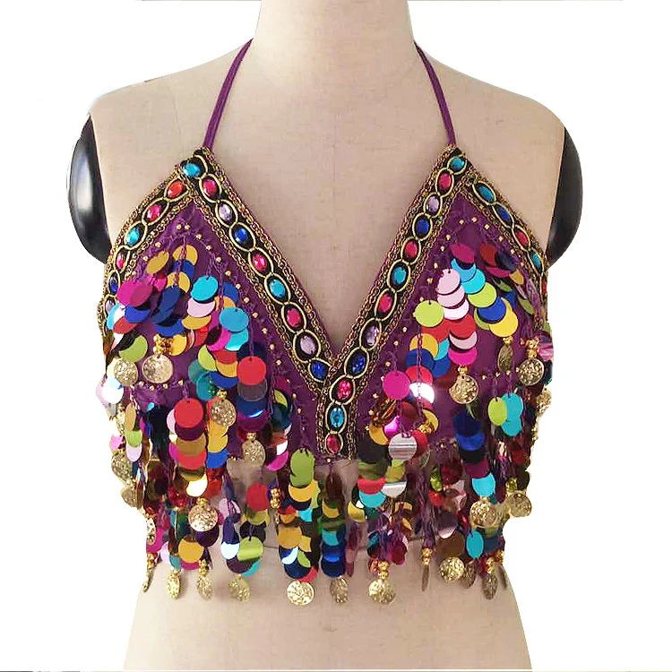 Бюстгальтер для танца живота, с блестками, с лямкой на шее, топ, этнический фестиваль, бюстгальтер для танца живота, перформация, одежда, топ, сексуальный женский костюм для танца живота