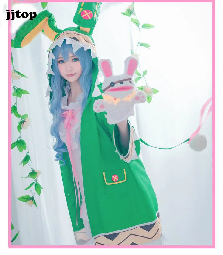 Комплект одежды: зеленая толстовка с капюшоном внутри, белое платье, носки с галстуком