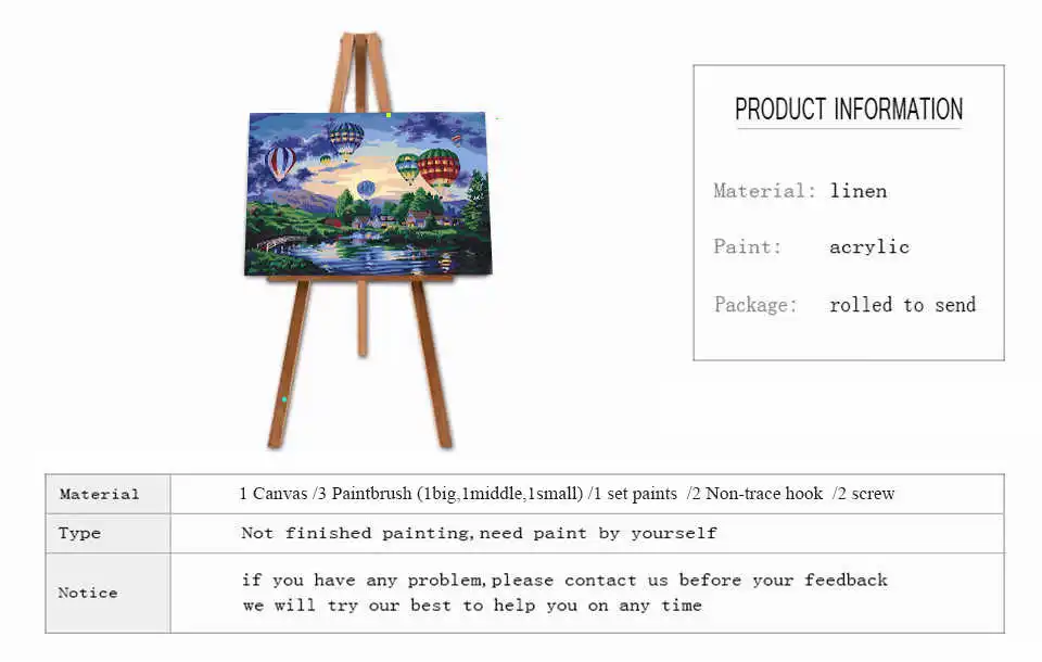 Инструменты:1 x холст/3 x Кисть (1 большая, 1 средняя, 1 маленькая)/1 набор красок/2 x крючок без следов/2 x винт