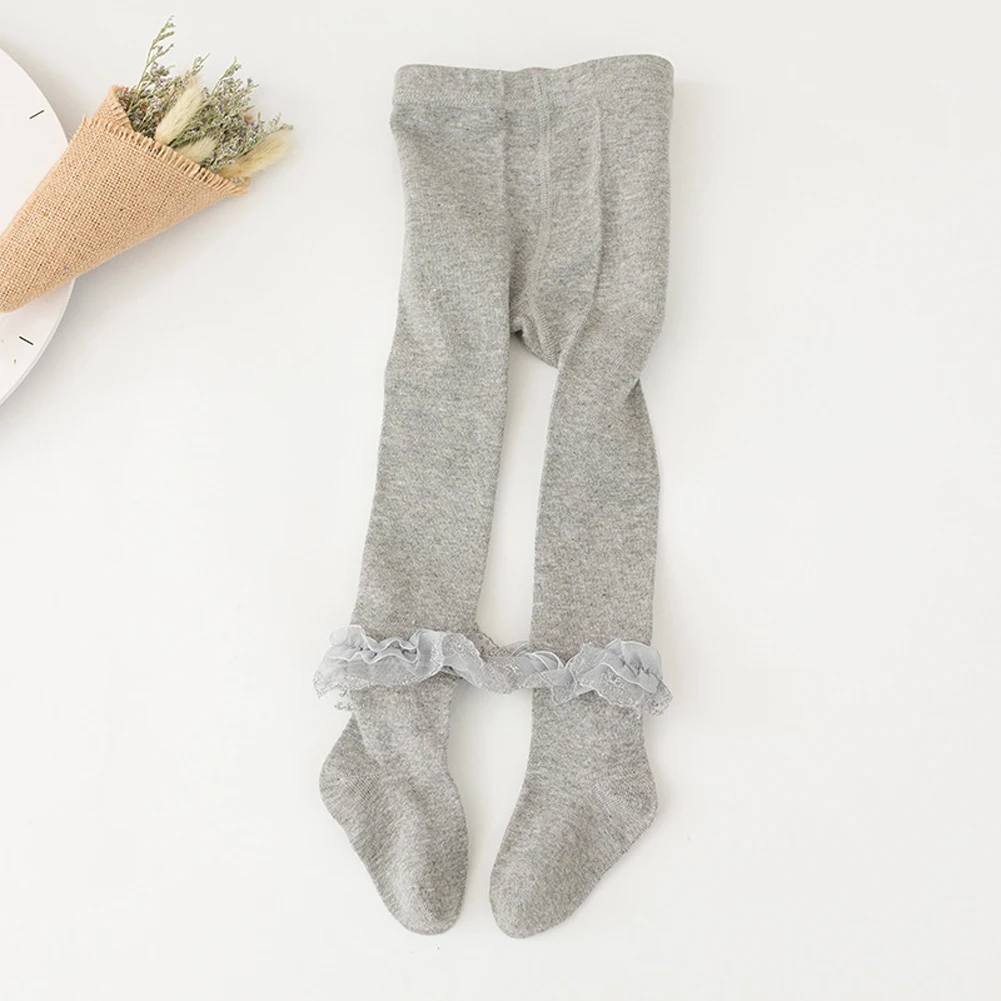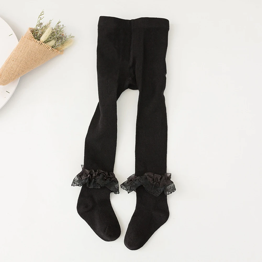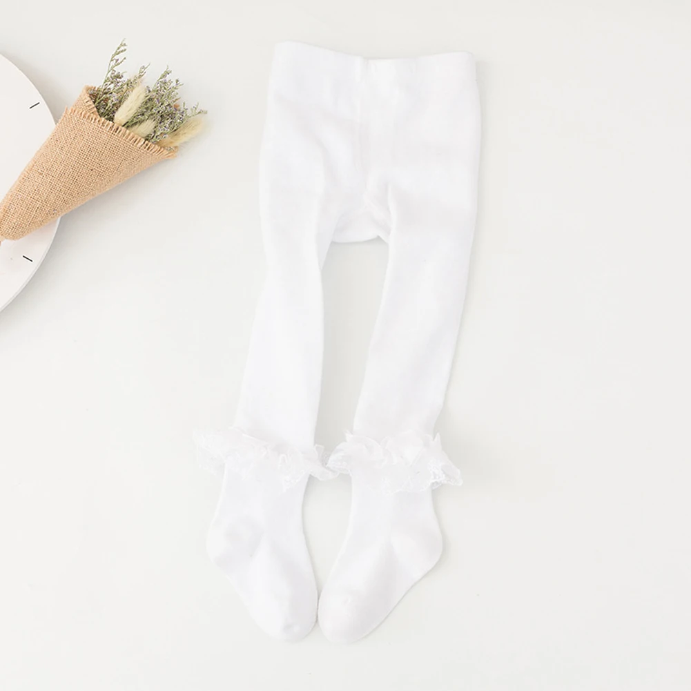 Детские длинные колготки для маленьких девочек мягкие колготки для малышей, эластичные теплые чулки осенне-зимние однотонные колготки с кружевом для маленьких девочек!