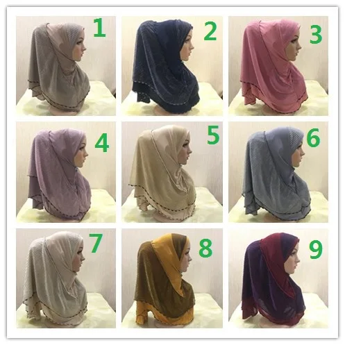 Two layers silver golden layer Muslim headscarf,long Headscarf,size70*60cm