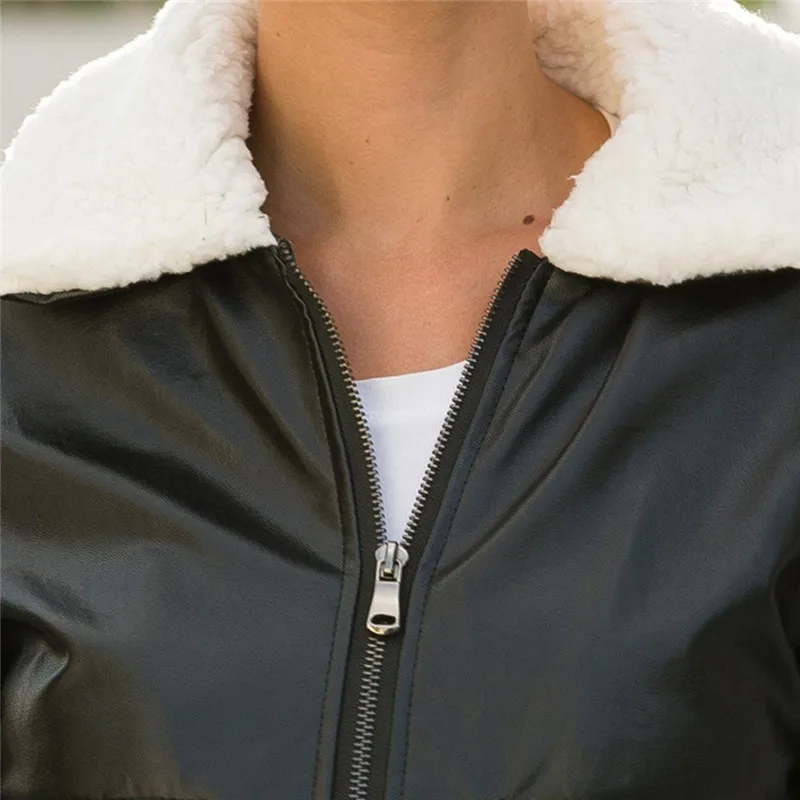 Женское пальто из искусственной кожи на молнии; Сезон осень-зима; Мягкие куртки черного цвета; Облегающее пальто из искусственной кожи; Верхняя одежда; Женские куртки