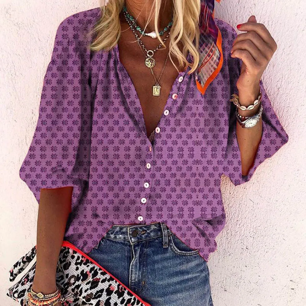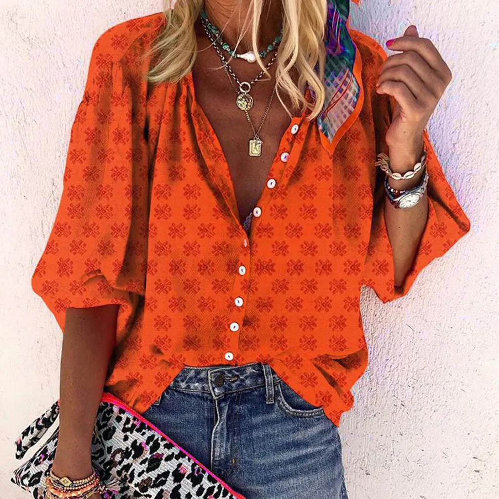 Blusas Mujer de Moda 2019, Женская Повседневная Ретро блуза на пуговицах с принтом и длинным рукавом, Свободная Повседневная блузка, Пляжная рубашка, Осенние винтажные женские топы