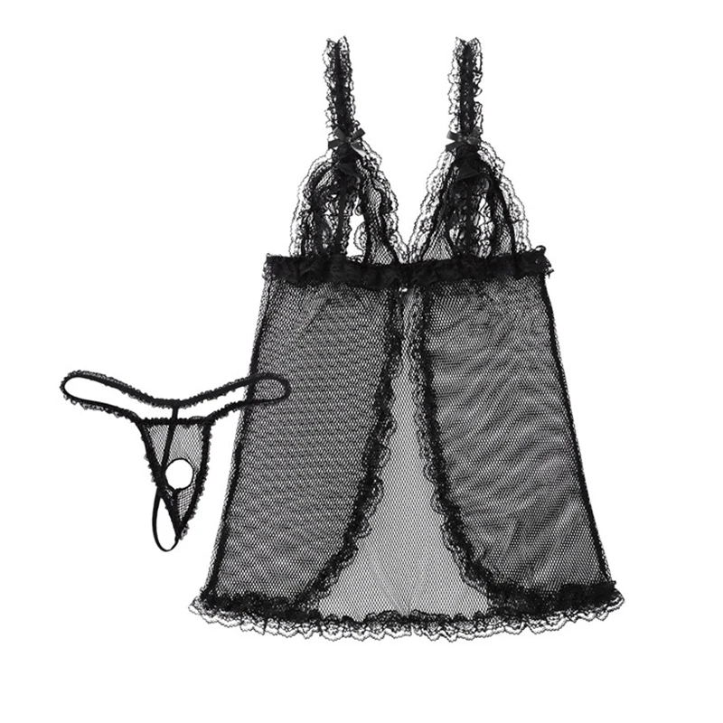 2 шт., Мужская прозрачная в крупную сетку, кружевной комплект нижнего белья с эластичными бретелями, открытые чашечки, топы с открытым отверстием, Трусы-стринги с низкой посадкой