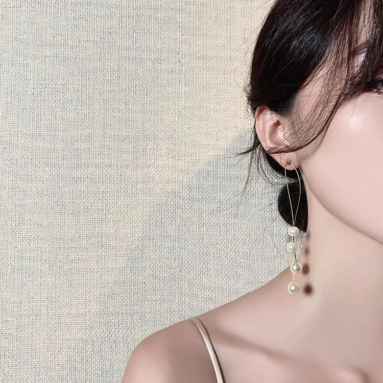 Женские длинные серьги с жемчугом элегантные подвески со змеиной цепочкой и