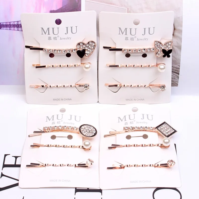 3 шт./компл. модный, элегантный, Кристальный Стразы заколки для волос жемчужные Заколки Для Волос