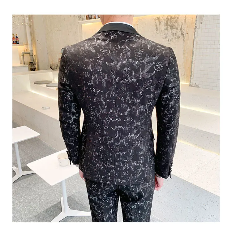 Темно синий мужской костюм на заказ облегающий из 2 предметов (куртка + брюки)
