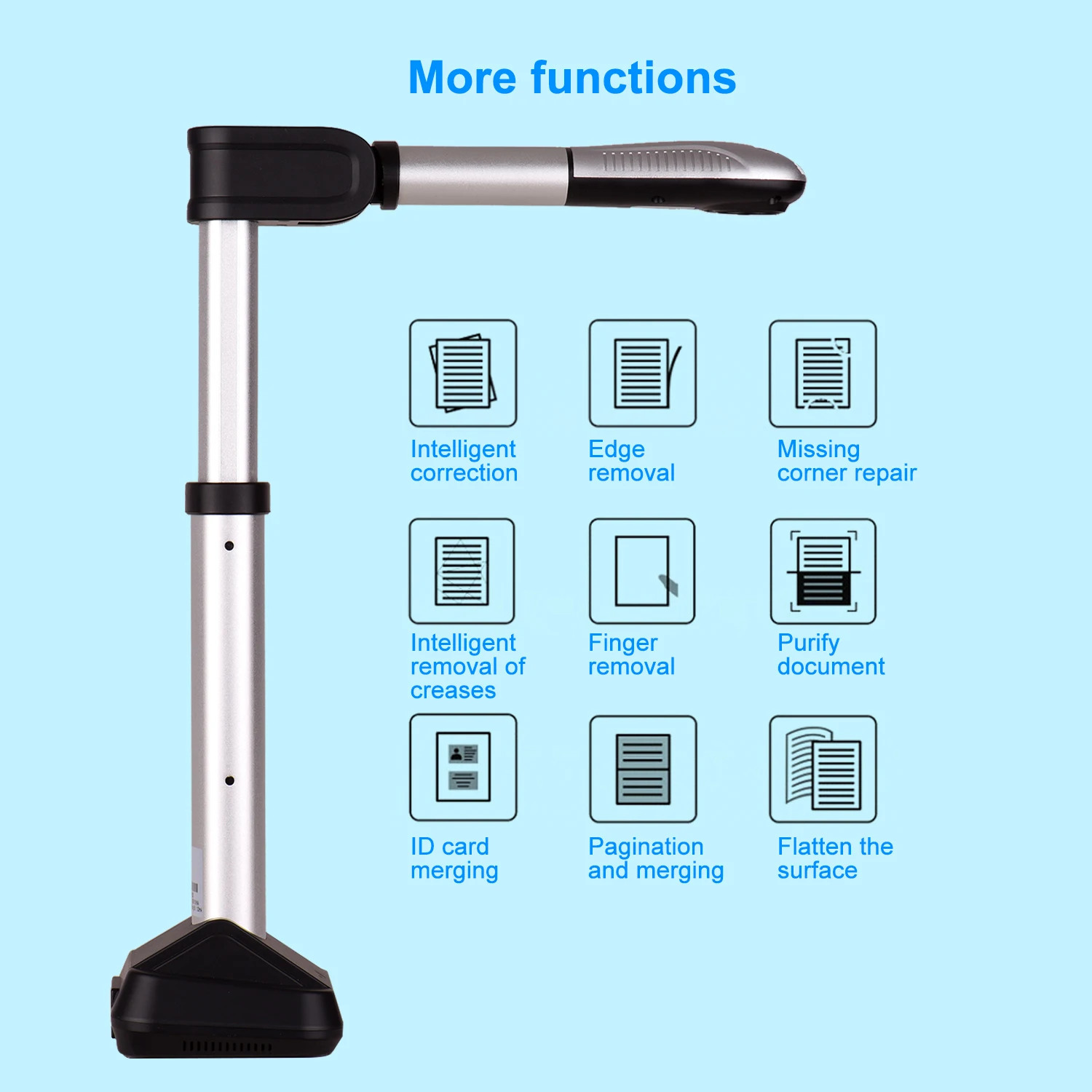 Поддержка нескольких режимов сканирования, включая цветное сканирование и серое сканирование; Можно добавлять и устанавливать водяные знаки в соответствии с вашими требованиями; Поддержка экспорта изображений в формате PDF. Светодиодный светильник, 3 уровня яркости можно регулировать, что делает результаты сканирования более четкими и точными.