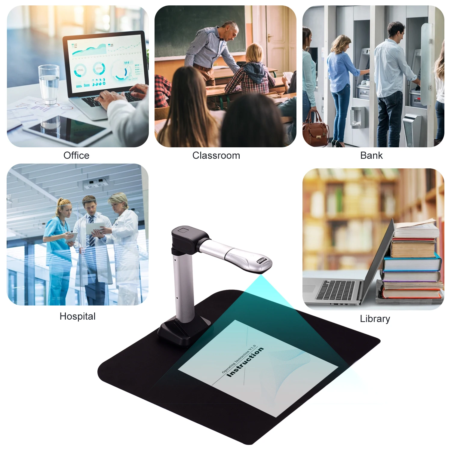 Поддержка сканирования документов, удостоверений личности, книг, журналов, счетов и т. Д., размер сканирования до A3. Широко используется в офисах, классах, библиотеках, банках, больницах и т. д., это может эффективно повысить эффективность нашей работы.