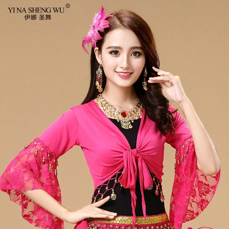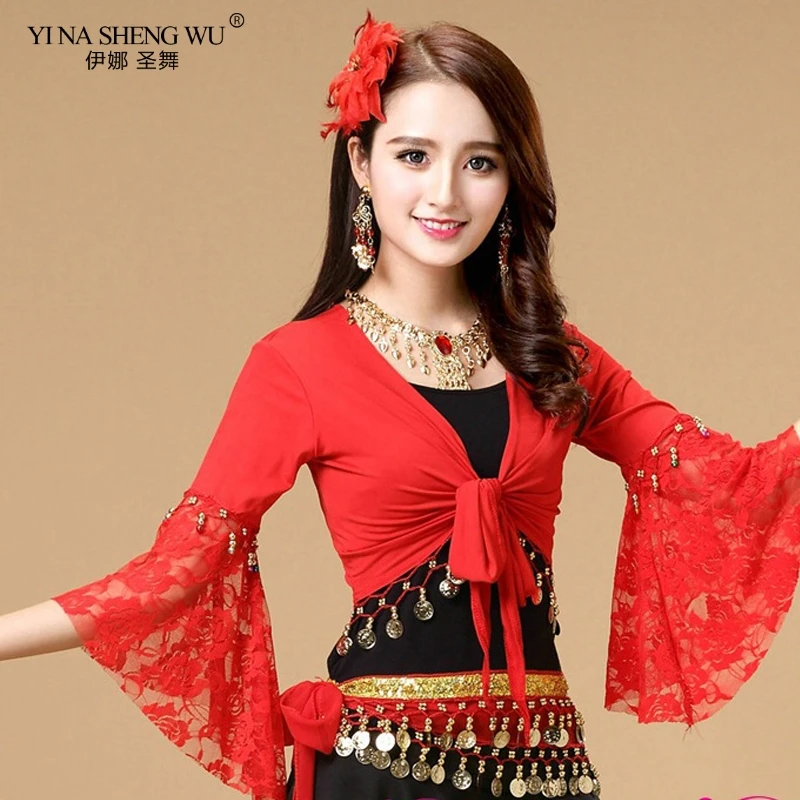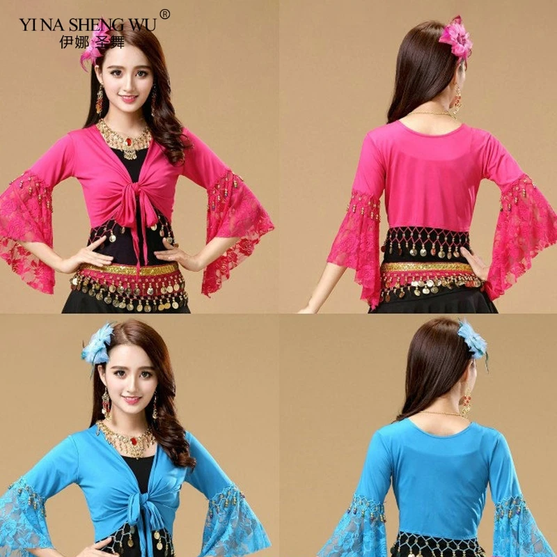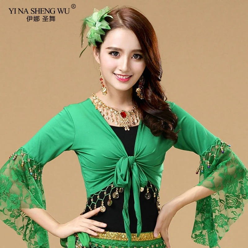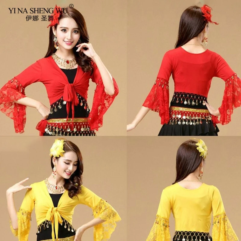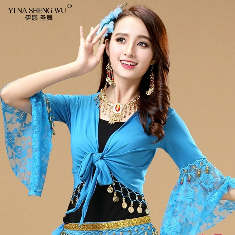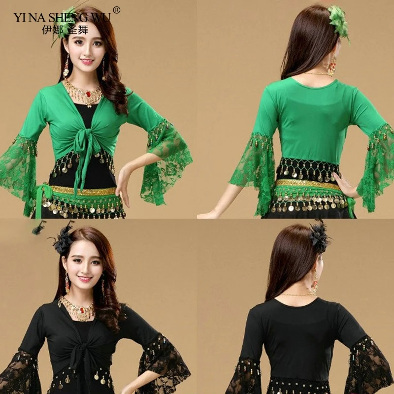 Новинка, женский костюм для танца живота, кружевной топ с короткими рукавами и золотыми монетами, индийская одежда для танца живота, топы для женщин