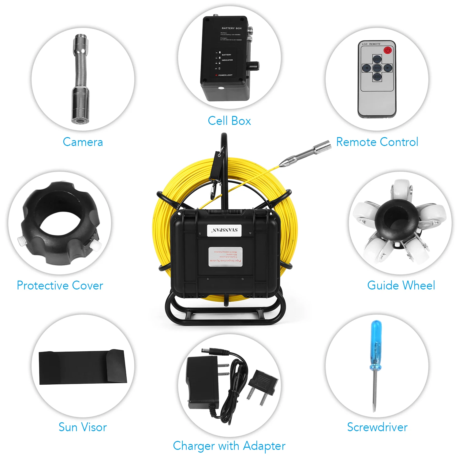 Камера для осмотра труб сочетает в себе зонд с наконечником камеры и ЖК-монитор 9 "для просмотра труднодоступной области осмотра. Это устраняет потребности разрывания гипсокартона для обнаружения утечек и помогает решить проблемы с трубами. Это должно быть для любого домашнего владельца, подрядчика и даже профессиональных сантехников!