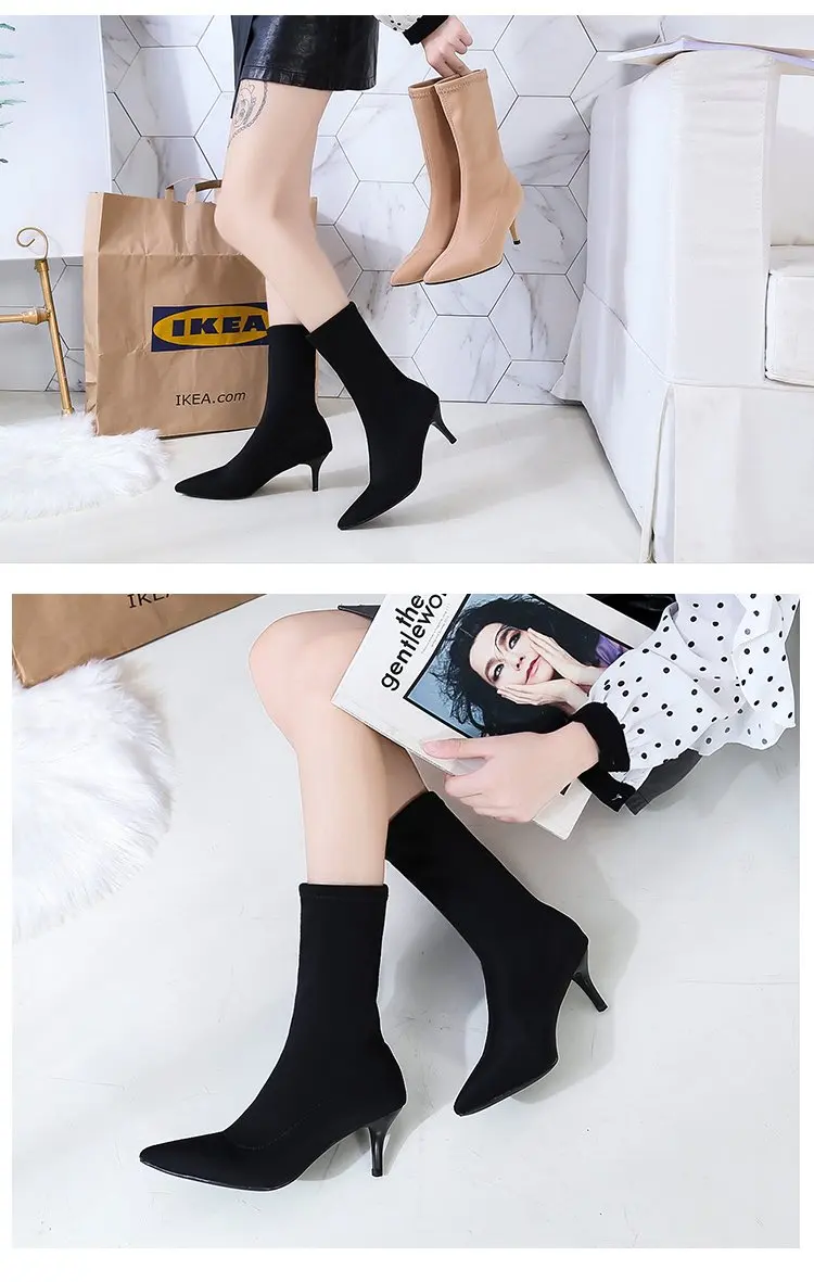 Сетчатые ботинки с острым носком Короткие женские в полоску Туфли лодочки на