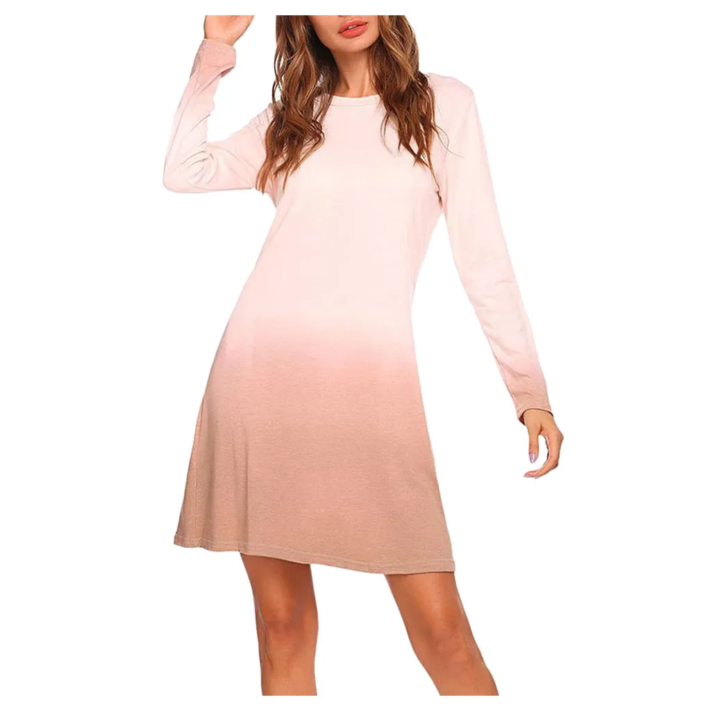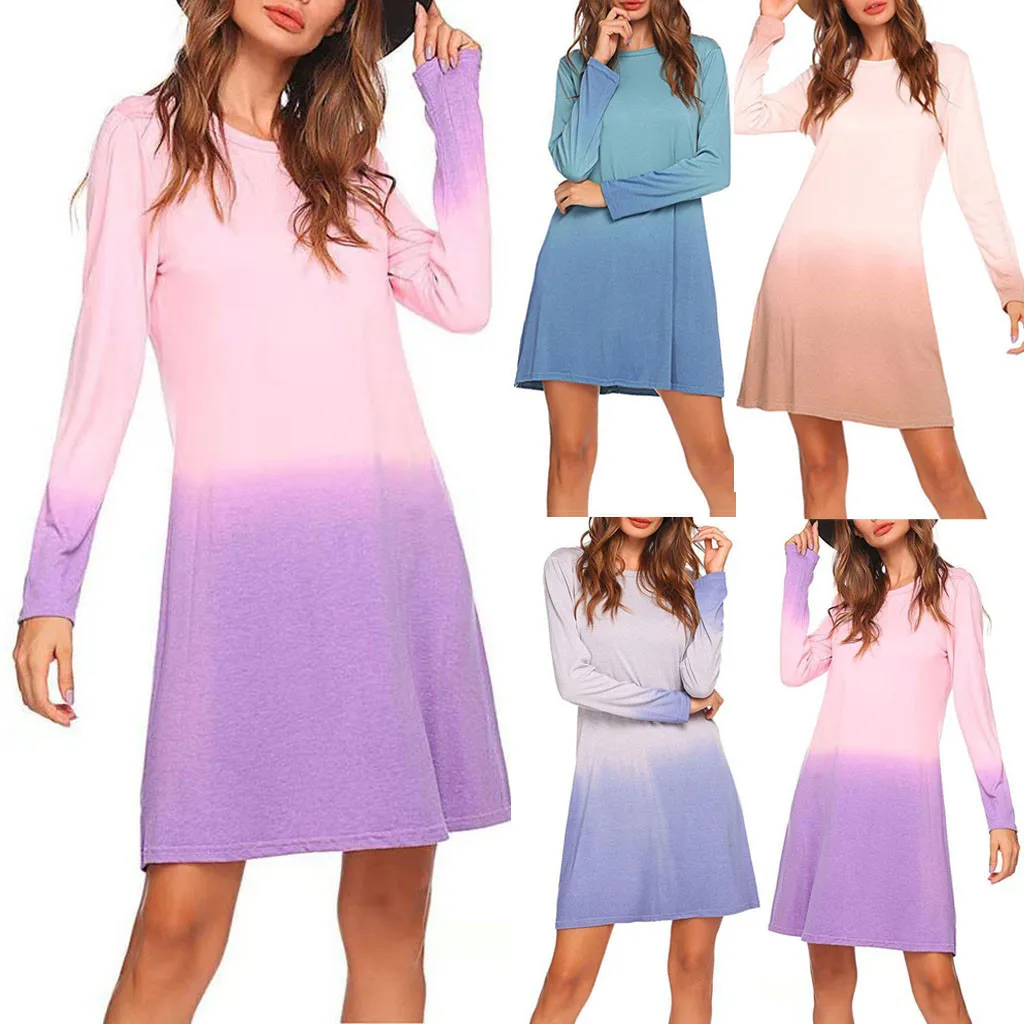 Женское повседневное градиентное Платье с принтом, с длинным рукавом, с круглым вырезом, макси платье
