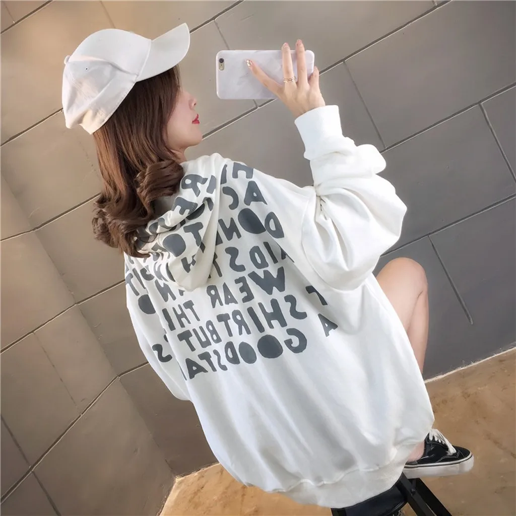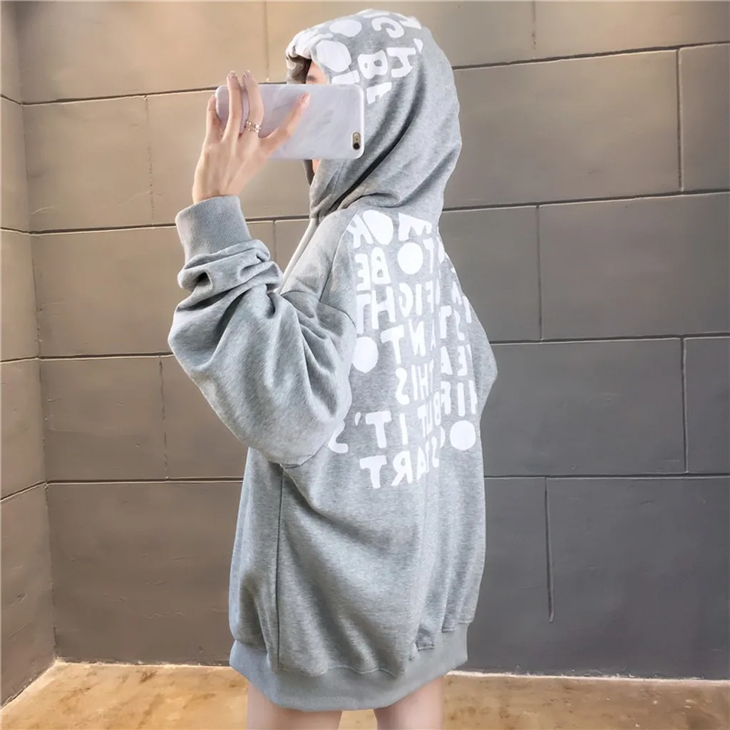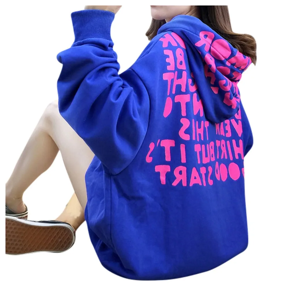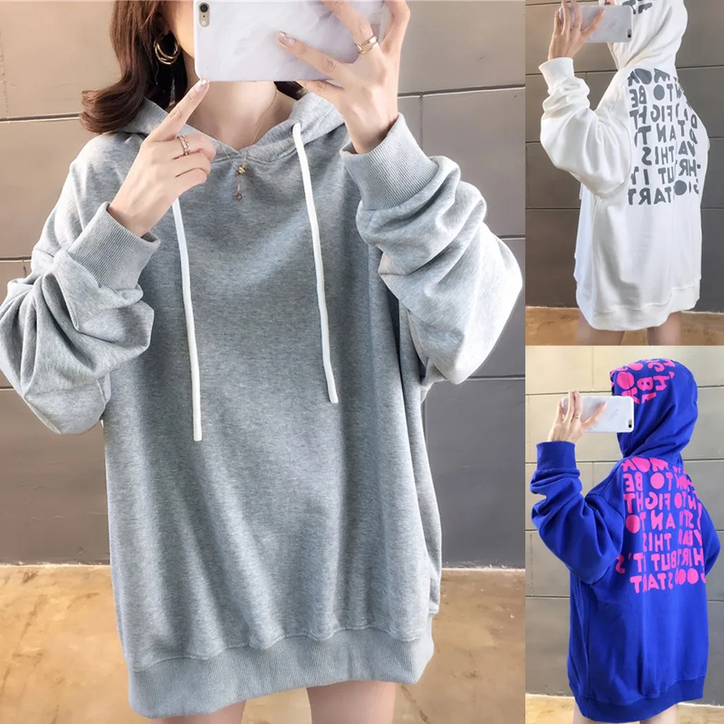 Women Warm Winter letter Print Hoodie Sweatshirt Hooded Pullover Tops Blouse