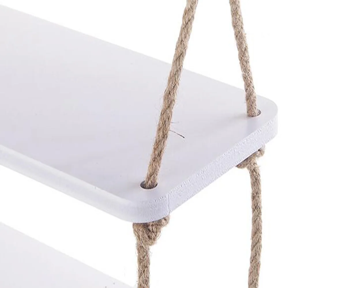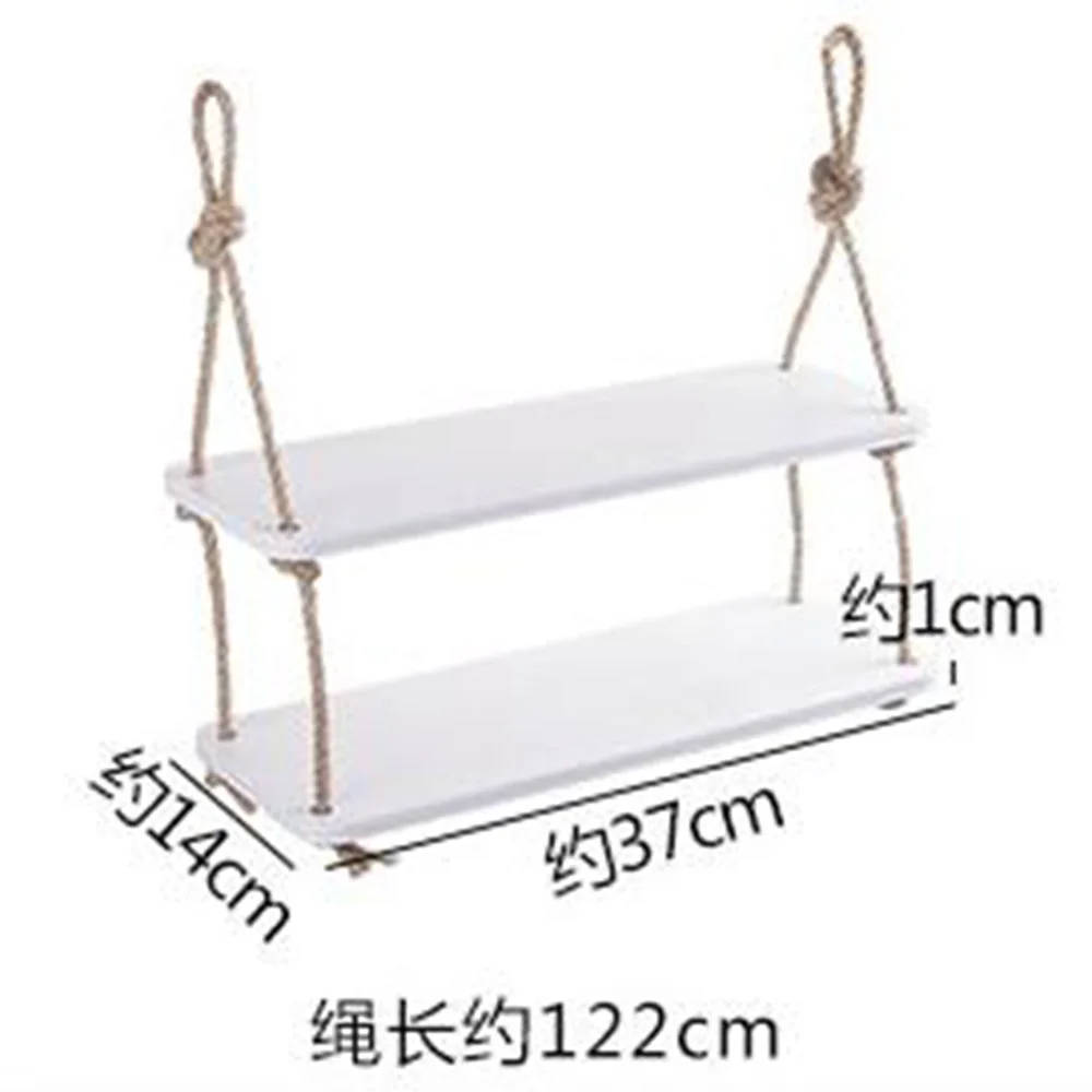 Название продукта: полка Материал: деревянная пластиковая доска + пеньковая веревка Цвет: белый Упаковка: 1 * Полка Размеры: как показано на рисунке Примечания: ручное измерение, неизбежная погрешность, пожалуйста, преобладайте в своем роде.