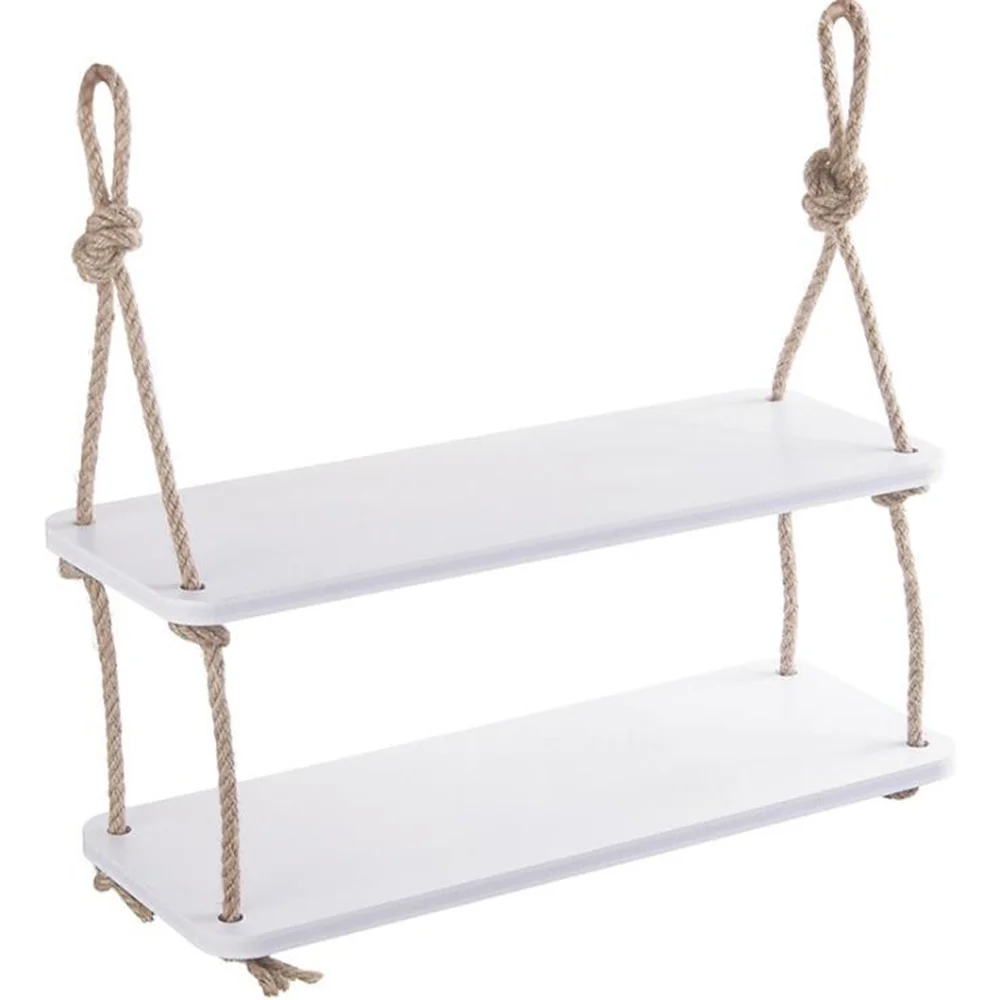 Бесплатная пробивная настенная полка для гостиной, разделитель слов, спальня, пеньковая веревка, двухслойная доска, стеллаж для хранения