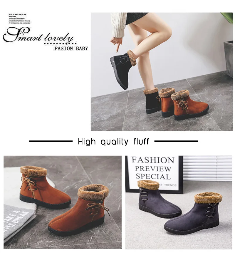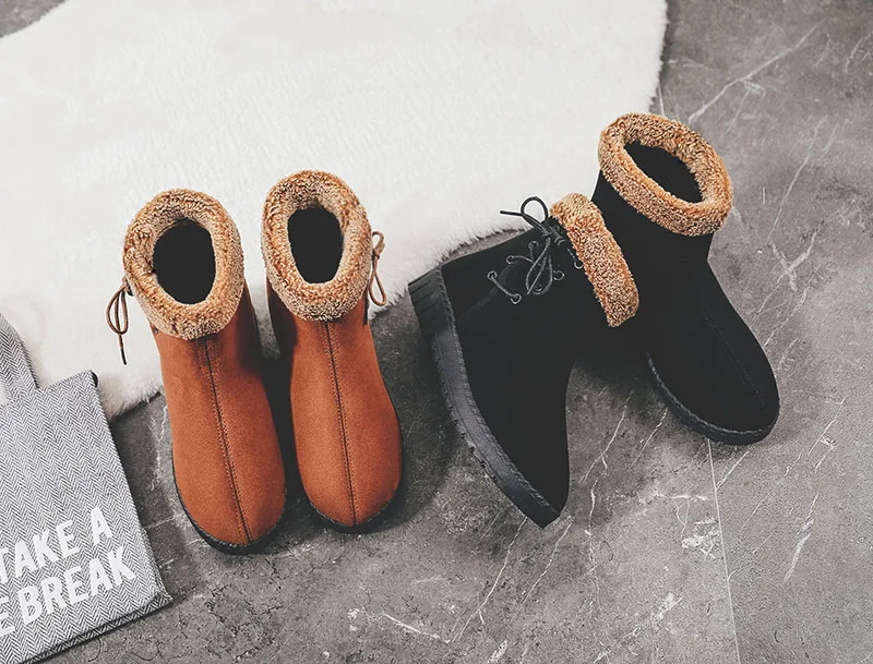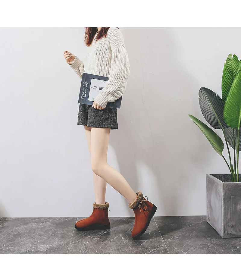 2019 теплые зимние ботинки; женские ботильоны из флока на плоской подошве с плюшевой стелькой; женская обувь; женская зимняя повседневная обувь на шнуровке