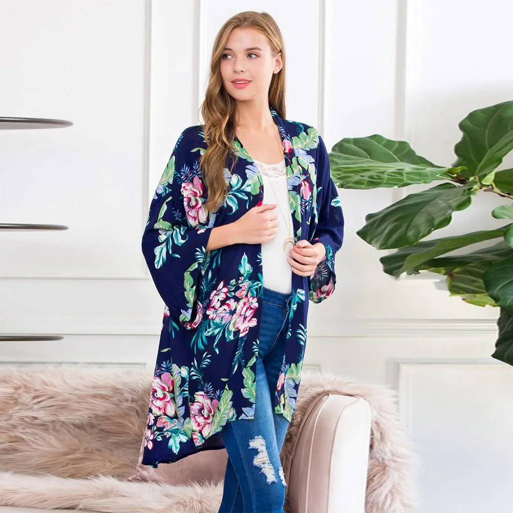 Женский кардиган с длинным рукавом и принтом, Повседневная Свободная верхняя одежда, топы, Тренч