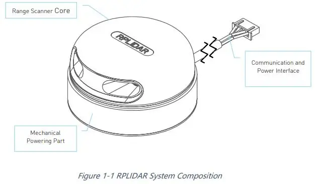 Во время каждого процесса RPLIDAR излучает модулированный инфракрасный лазерный сигнал, и лазерный сигнал затем отражается от объекта, который будет обнаружен. Возвращающий сигнал затем отбирается системой сбора зрения в RPLIDAR, и DSP, встроенный в RPLIDAR, начинает обрабатывать данные образца и выводит значение расстояния и угла между объектом и RPLIDAR через интерфейс связи. При управлении системой двигателя ядро сканера диапазона будет вращаться по часовой стрелке и выполнять сканирование на 360 градусов для текущей среды.