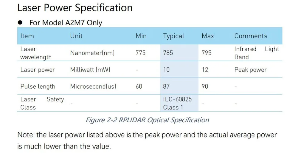 В связи с улучшением производительности аппаратного обеспечения SLAMTEC и сопутствующим образом, RPLIDAR A2M7 работает хорошо во всех видах внутренней среды. Между тем, перед тем как оставить завод, каждый RPLIDAR A2M7 прошел строгий тест, чтобы обеспечить выходную мощность лазера соответствует стандарту безопасности глаз IEC60825 класса 1.