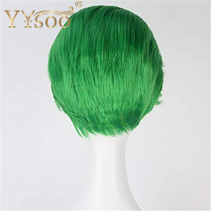 YYsoo, мужские парики для косплея, короткий прямой зеленый парик, мужской взрослый, предварительно стилизованный костюм, парик для косплея, парик для хэллоуина, короткий парик