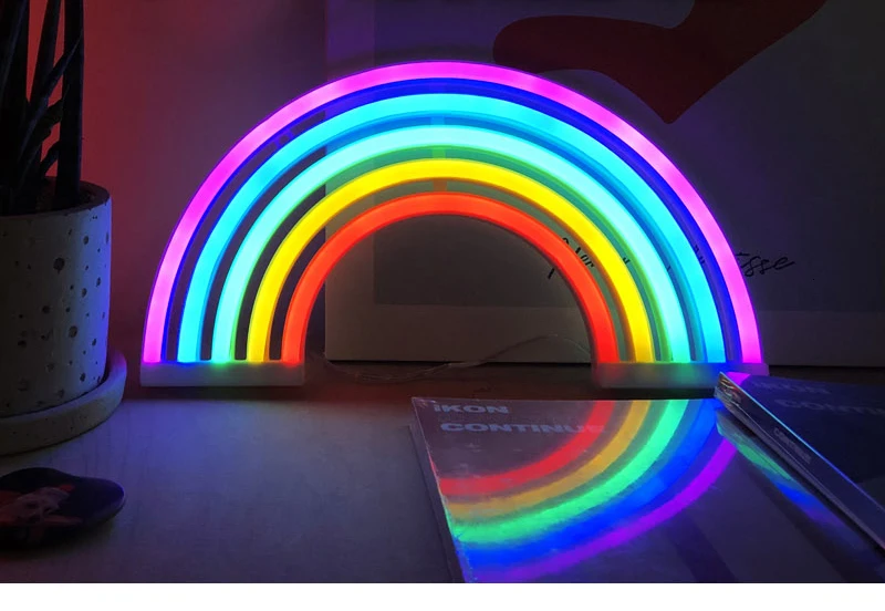 Милый неоновый Радужный Ночной светильник, прекрасное решение для вашего маленького декора комнаты. Красивый и современный декоративный светодиодный светильник. Добавьте энергии к боковому столу кровати, украшенному этим светодиодный светильник.