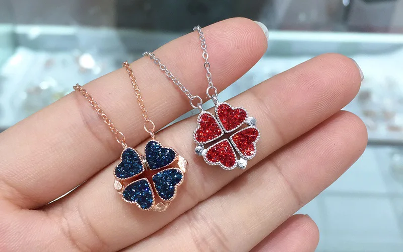 Название продукта: синий и красный двусторонний магнит открытое и закрытое ожерелье