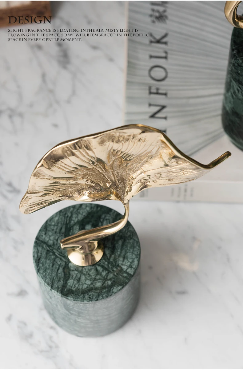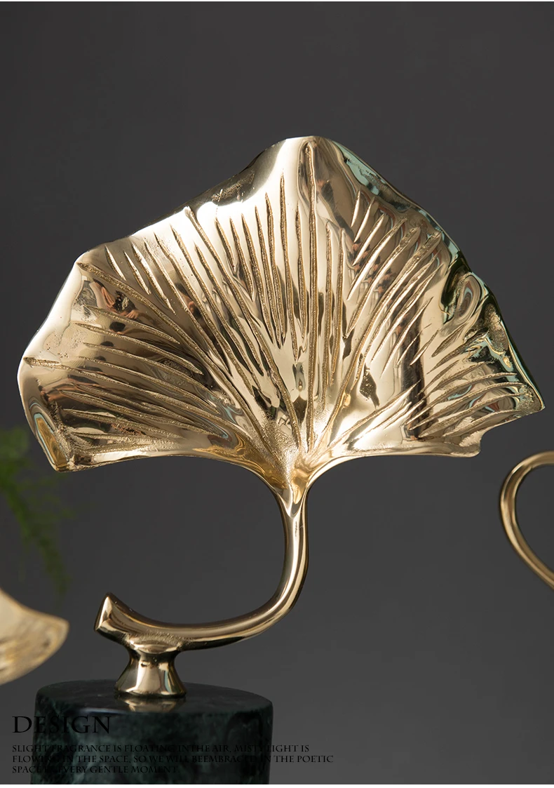 Роскошный Золотой металлический завод гинкго листья домашний Декор Аксессуары Статуэтка украшение для гостиной предметы офисный зеленый мрамор подарок