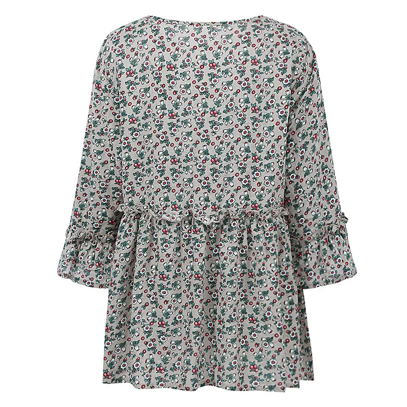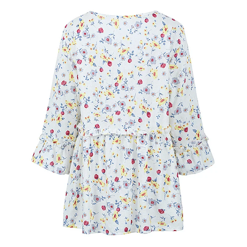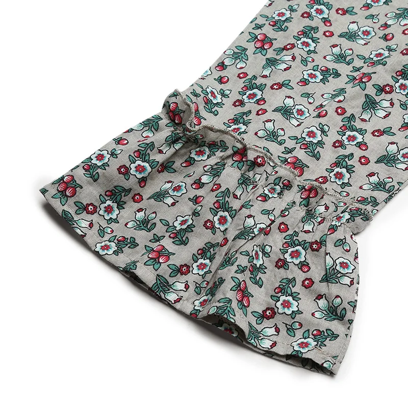 Изготовленная из мягкого и удобного хлопка и льна, эта блузка отполирована красочным цветущим принтом, Расклешенным рукавом и уютной длинной длиной для романтического прикосновения.