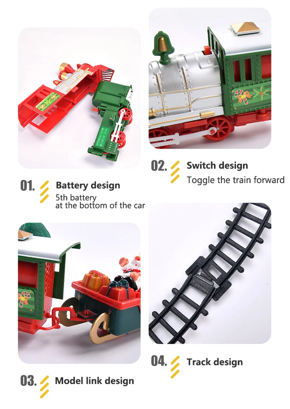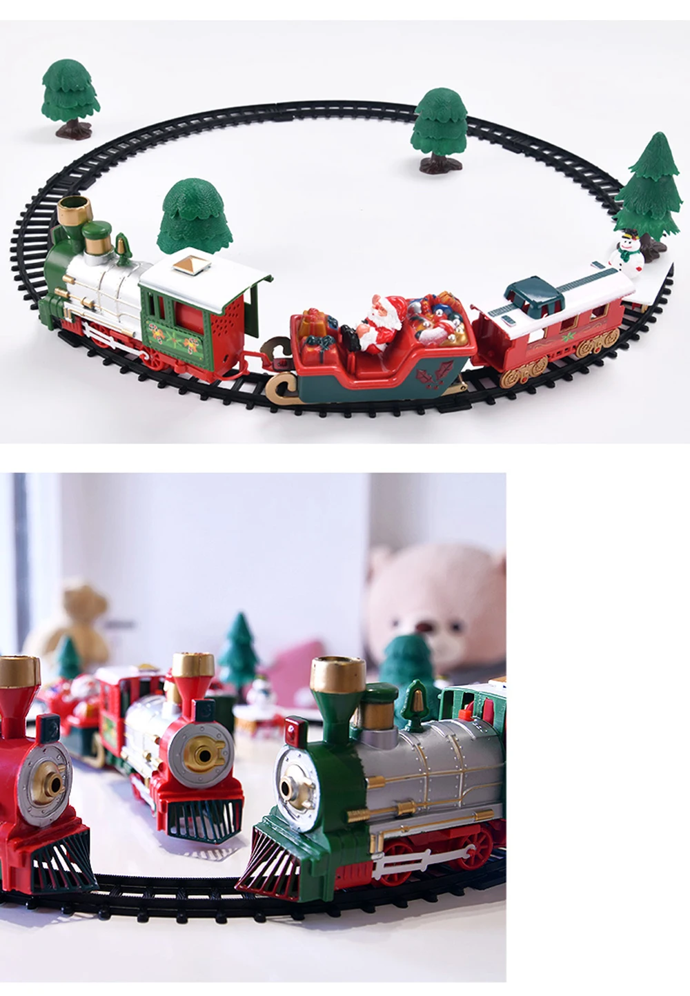 Рождественский Электрический паровозик, музыкальный светильник, рождественские украшения, Классический силовой трек, детский трек, маленький игрушечный поезд