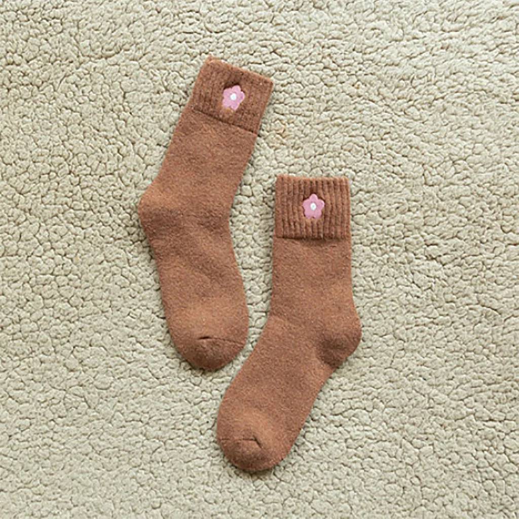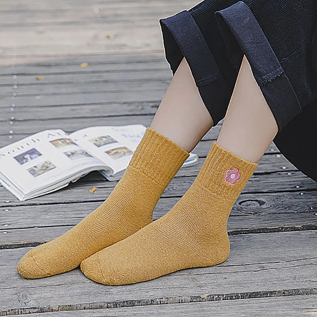 Модные домашние мягкие чулки для женщин и девочек с вышитыми цветами для сна