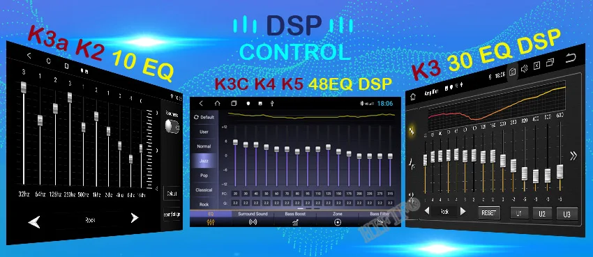 Поддержка эквалайзера 18/36 эквалайзера для музыки, видео-дисплея альбома, названия песен, имени певца, лирической информации от игрока по умолчанию.