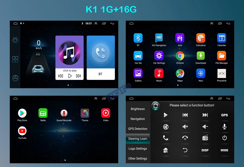 С помощью приложения Easy-Connect, через usb-кабель для зарядки и Bluetooth, вы можете отображать экран телефона android, например, главное меню, фотографии/видео, онлайн-карты navi. Также вы можете управлять телефоном Android на этом устройстве. Поддерживает большинство телефонов Android.