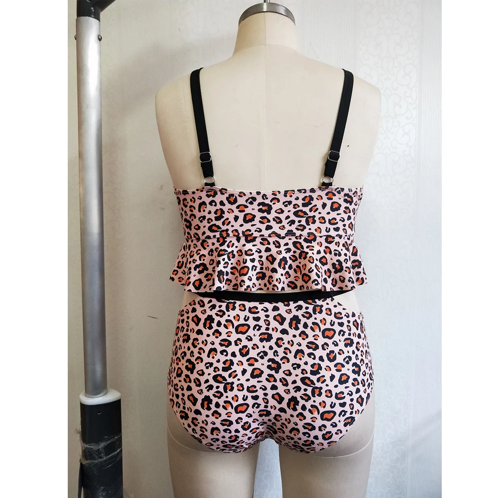 Wipalo, новинка, большой размер, Леопардовый женский купальник из двух частей, с высокой талией, гофрированный бикини, комплект, купальные костюмы, бикини, пуш-ап, купальный костюм