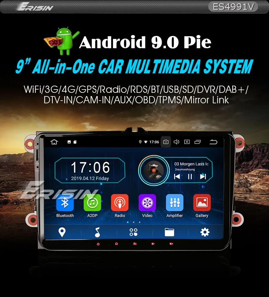 ES4991V 9 "четырехъядерный емкостный Android 9,0 автомобильный мультимедийный плеер gps/WiFi/TPMS/DVR/DTV-IN/DAB +...