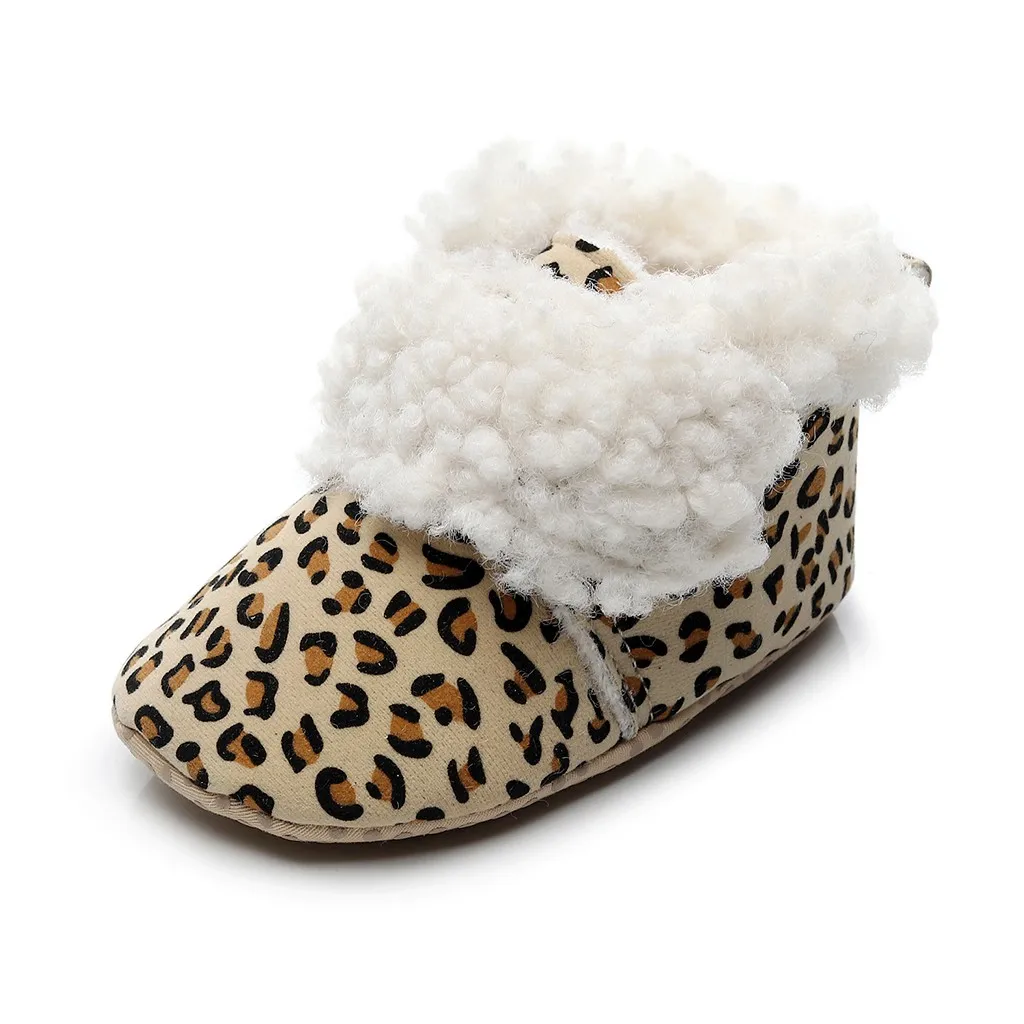 Зимние теплые ботиночки с леопардовым принтом для маленьких мальчиков и девочек