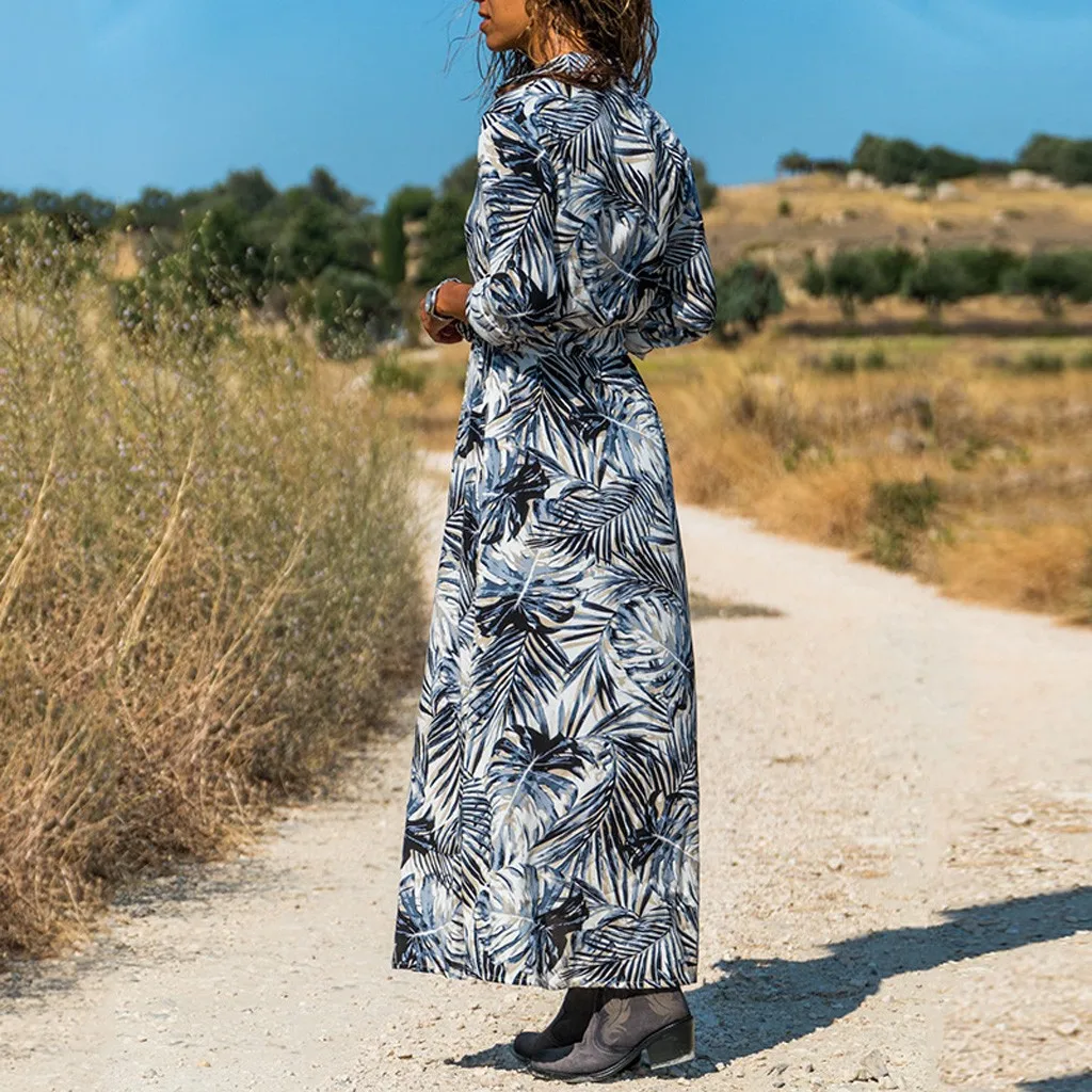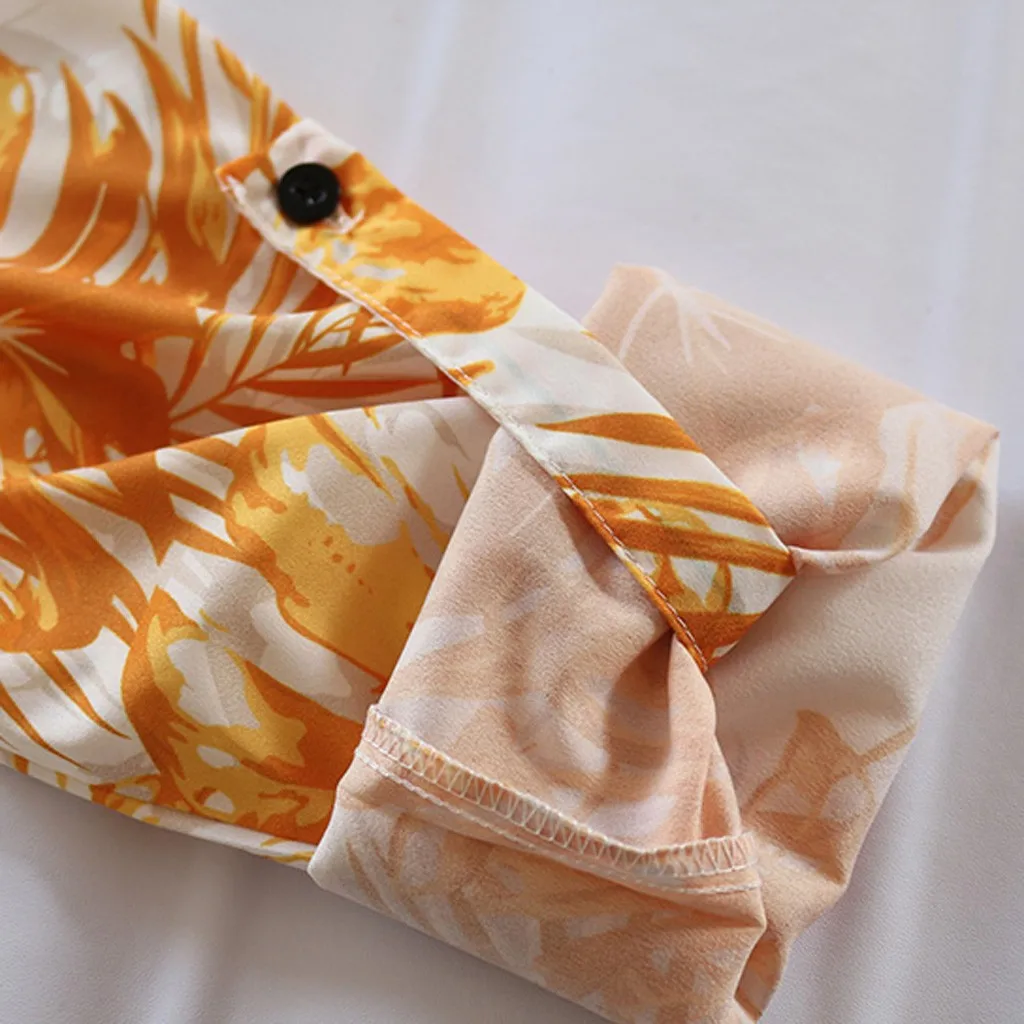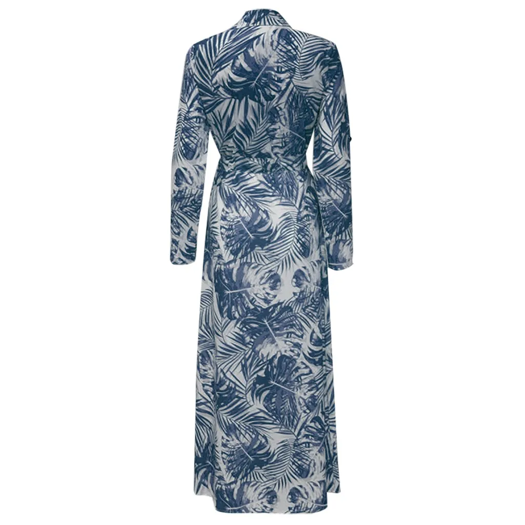 Женское повседневное мини-платье с длинным рукавом и принтом кленовых листьев, бандаж на пуговицах