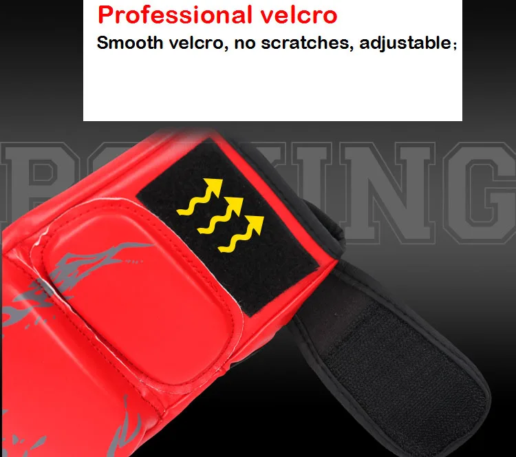 Товар: боксерские перчатки, фитнес перчатки Муай Тай Боевые перчатки, тренировочные перчатки Применимые люди: Audlts мужчины женщины мужчины Тип: полуперчатки для бокса Цвет: черный, красный, синий Посылка: 1 пара/полиэтиленовый пакет Вес: 0,3 кг Особенности: 1. 3 см Толстая Подушка, встроенная подушка для уменьшения повреждений, вызванных столкновением; 2. Взрывозащищенная кожа, утолщенная высококачественная искусственная кожа, устойчивая к разрывам, износостойкая, чтобы избежать повреждений; 3. Удобные и дышащие; 4. Полностью дышащий дизайн ладони, большая площадь дышащей ткани, впитывает пот; 5. Удобный дизайн; 6. Профессиональная липучка, гладкая липучка, не царапается, регулируется; 7. Отклонение от линии, точная швейная линия, окантовка.