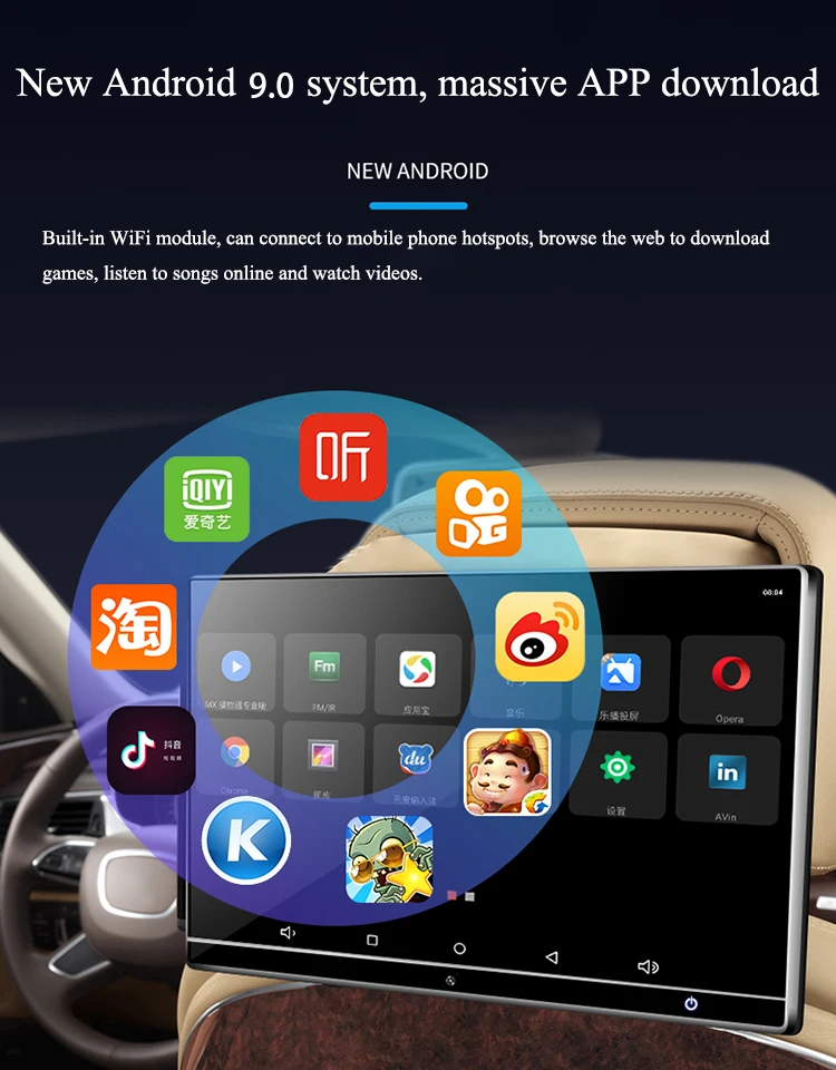 9. AV видео и аудио вход, Поддержка оригинального управления экраном автомобиля (оригинальный передний экран автомобиля должен иметь AV видео и аудио выход) или цифровой ТВ-бокс вход, поддержка Bluetooth-совместима.