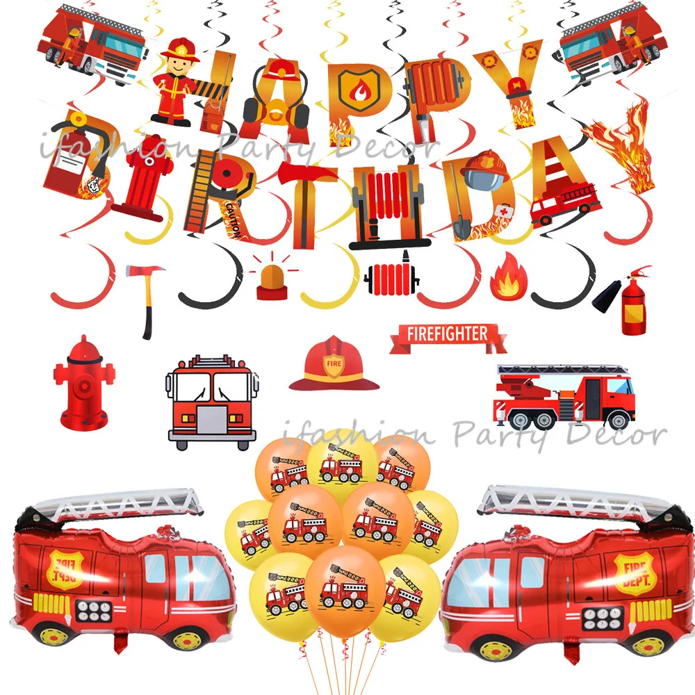 Пожарная машина День Рождения украшения пакет Пожарный Bday партии