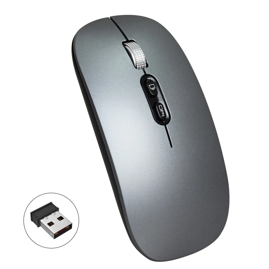 Перезаряжаемая беспроводная мышь 2,4G металлическая Бесшумная оптическая мышь для ноутбука