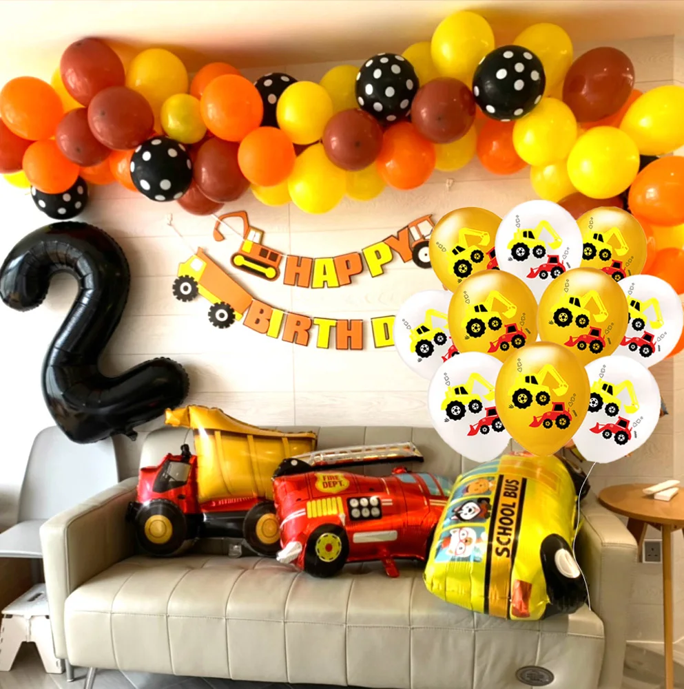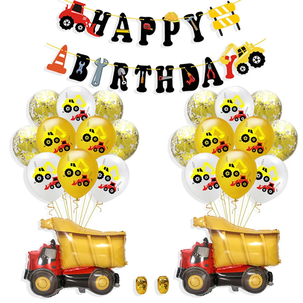 Материал: посуда: бумага Воздушные шары: латекс/алюминиевая фольга Размер: как на картинке Узор: Тема экскаватора для строительных машин