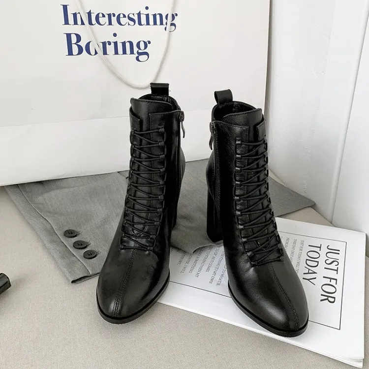Женские мотоциклетные ботинки сезон осень зима Новые Черные ботильоны женская