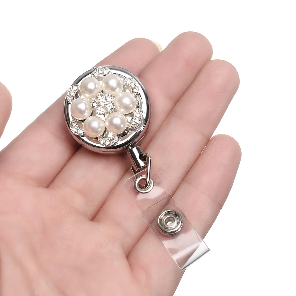 1 шт. Новый Блестящий жемчужный значок, выдвижной держатель для удостоверения личности, зажимы для ремня, металлический сверхпрочный стальной кабель, держатель для удостоверения личности для студентов