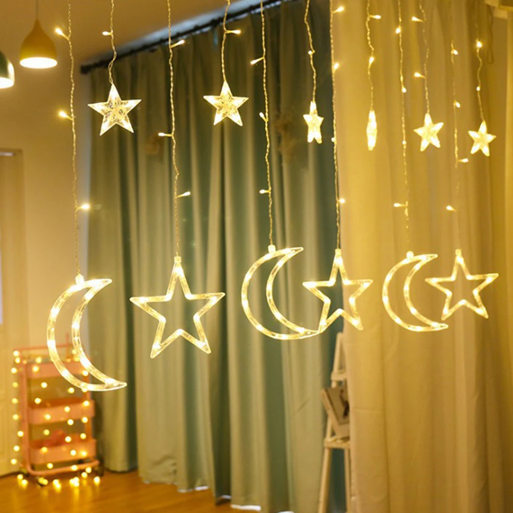 80 шт. Фламинго светодиодный ночник строка светильник s Фея Шторы светильник Луна Звезда Пентаграмма гирлянды светодиодные лампы для рождественской вечеринки Свадебный декор
