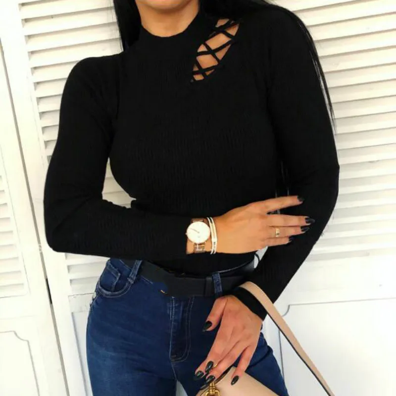 Женская блузка с v образным вырезом COLROVIE черная однотонная Элегантная Футболка