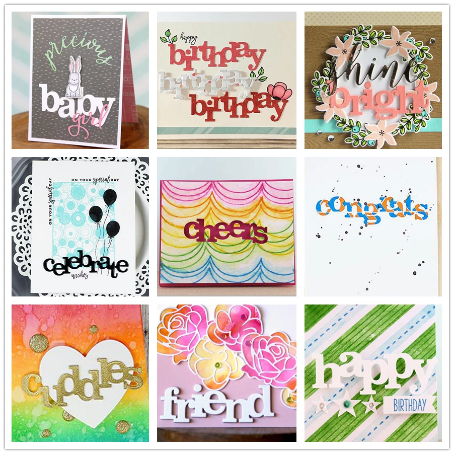 Хит продаж, 26 штук, поздравления, торжество, слова, подарок, спасибо, металлические режущие штампы для альбома скрапбукинга DIY, новые поделки