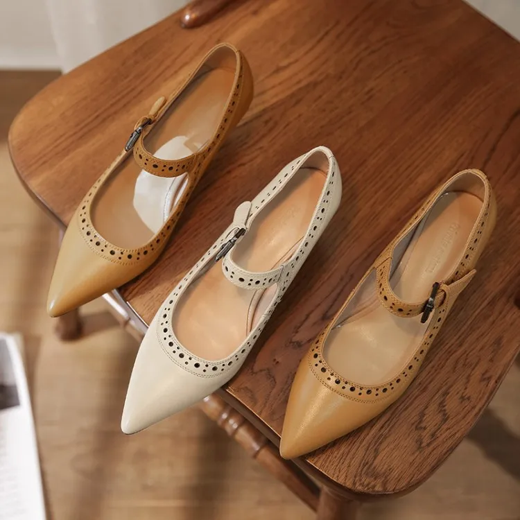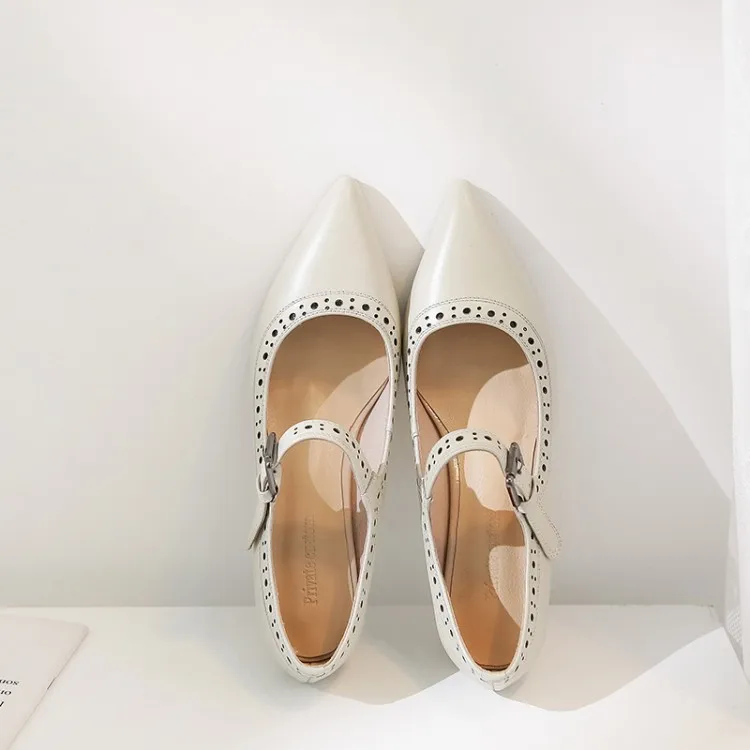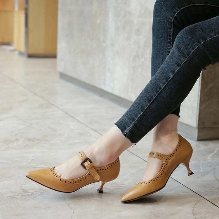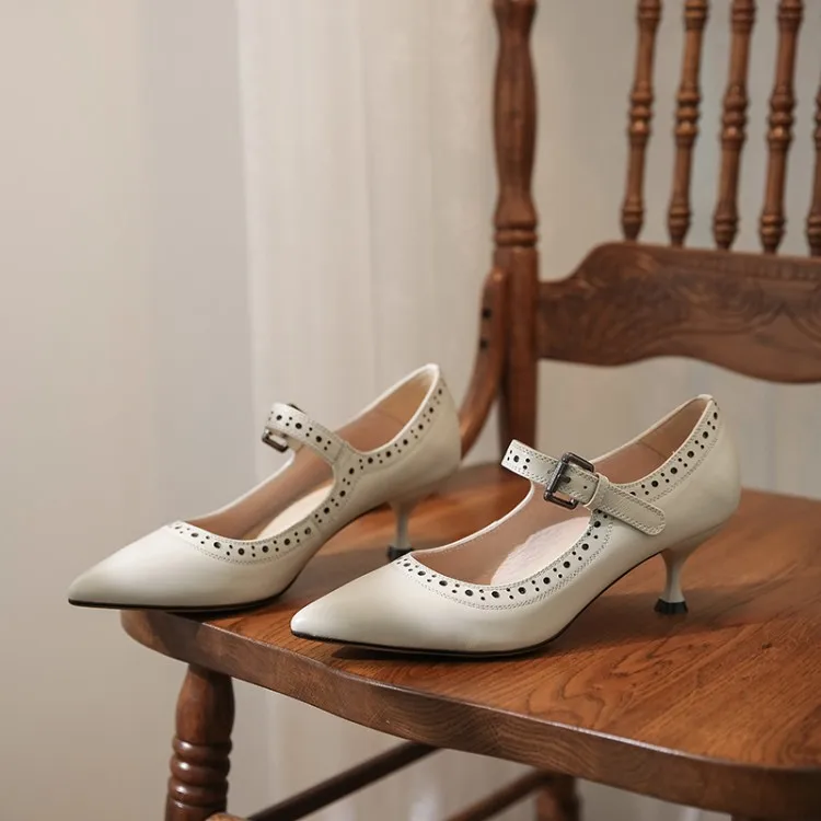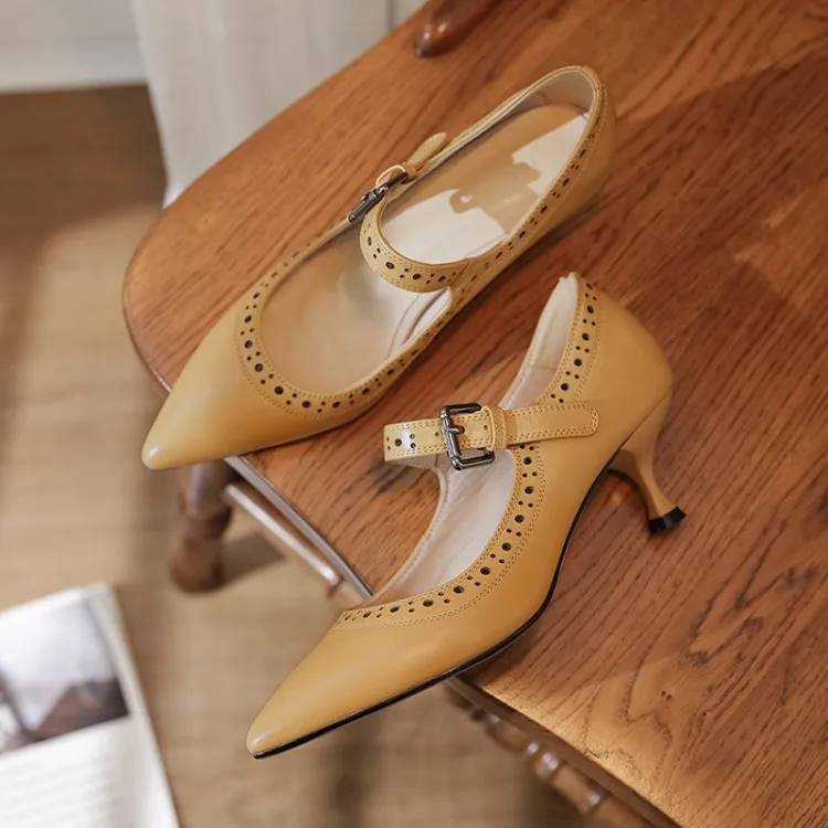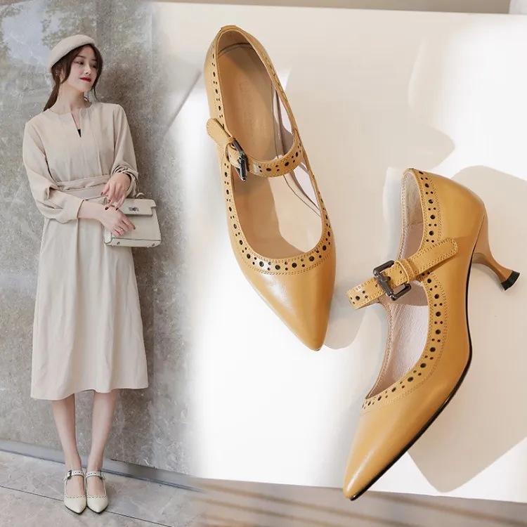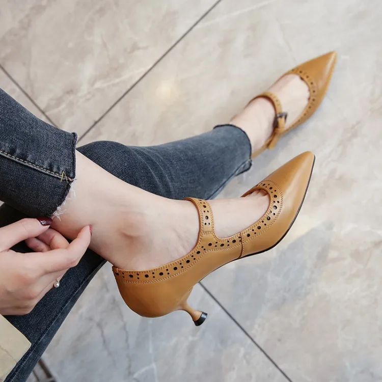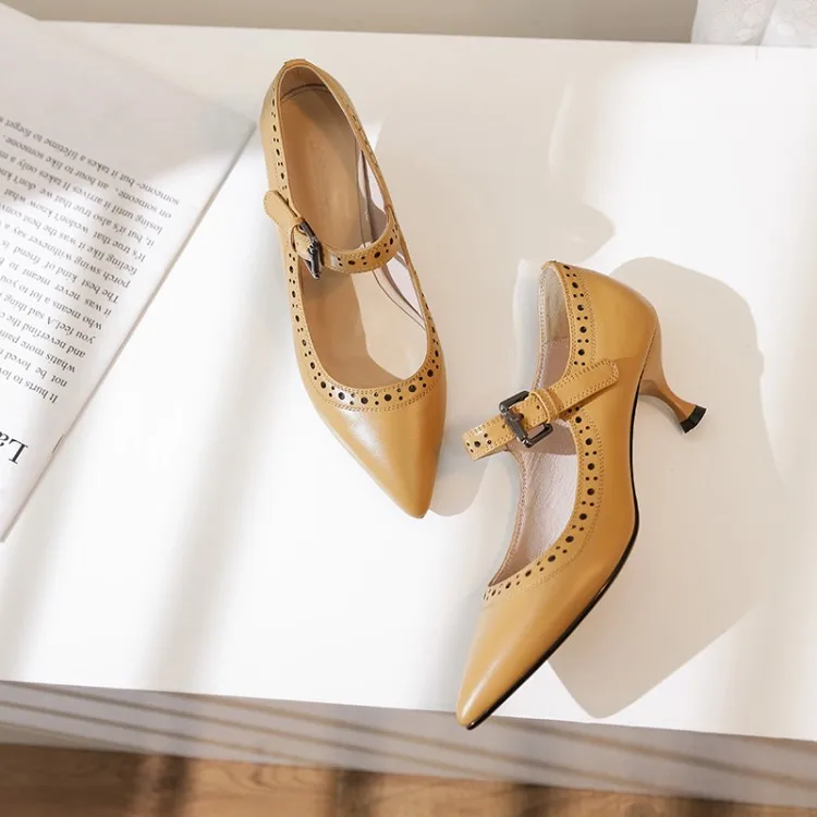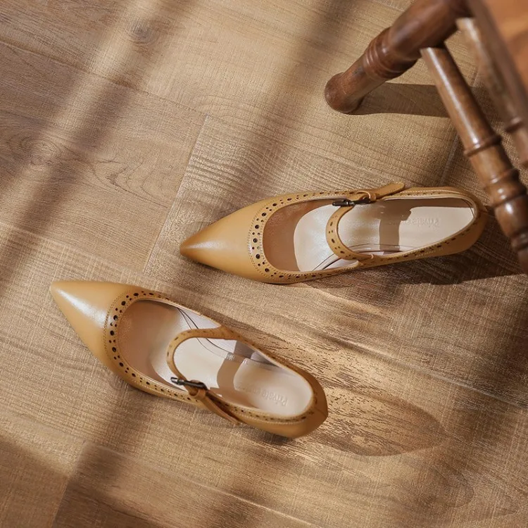 Женские туфли лодочки из натуральной кожи на высоком каблуке с круглым носком
